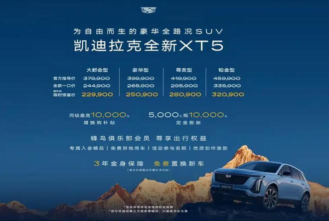 凯迪拉克推出新款XT5,限时优惠价22.99万起,此举旨在吸引更多消费者关注并提升销量,新款XT5在设计和科技方面进行了升级,能否借此限时优惠策略实现销量上涨,还需市场进一步验证,消费者对于这一价格及车型的反应将决定其销售表现,摘要字数控制在100-200字以内。
