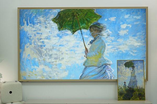 艺术画廊模式提供了上百幅世界名家的经典画作,涵盖了印象派、风景画、现代艺术等不同风格的画作,足不出户就能欣赏世界名画,还可以根据画作风格选择合适的衬布,客厅秒变私人画廊。