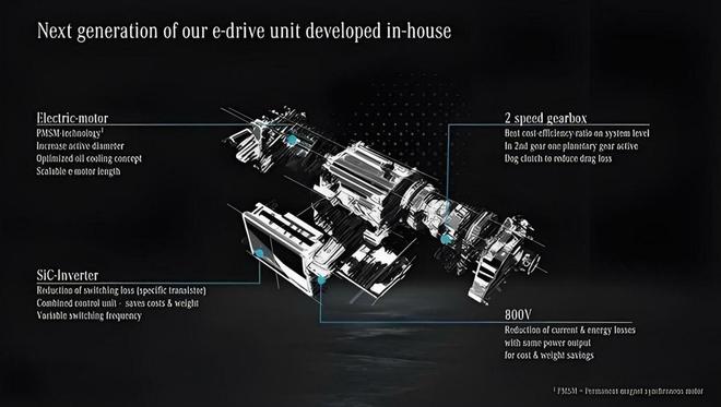 至于动力,新车将配备eATS 2.0电驱系统,该系统包括径向电机以及双速变速系统。据悉,普通版将会提供单电机后驱以及双电机四驱版本,最大功率分别为272马力和489马力,AMG高性能版则会达到608马力。0-100公里/小时的加速时间在4秒以内。