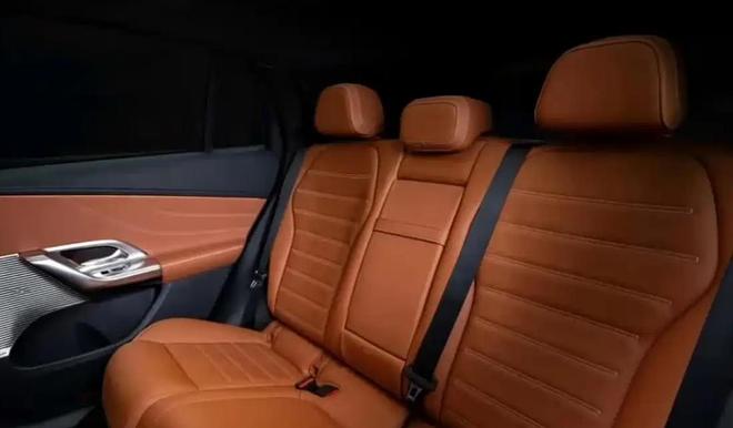 侧面整体圆润动感,造型流线,向前俯冲的车身姿态也还算是富有力量感。同时,新车采用隐藏式门把手和大尺寸轮圈,轴距在现款燃油版GLC那2890mm的基础上增加了80mm,达到了2970mm。