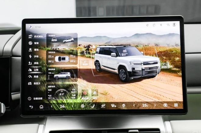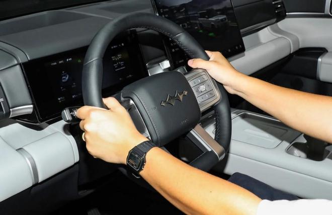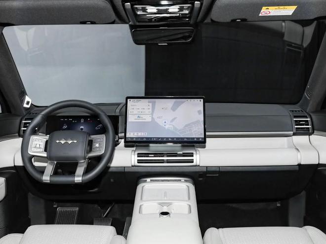 进入车内,整个设计还是方程豹品牌的家族式设计,在车展现场我们也体验了,视觉观感还是挺不错的,很符合他们所宣传的那种星际方舟的感觉。