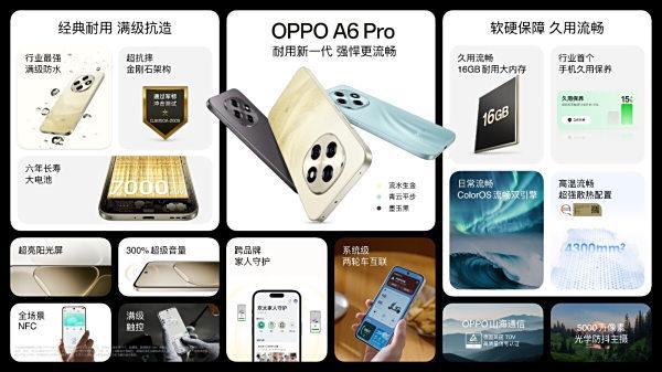 OPPO正式发布新一代“耐用战神”OPPO A6 Pro,通过满级防护、超长续航与系统抗老化技术的三维突破,重新定义大众机型耐用标准。OPPO A6 Pro搭载7000mAh长寿电池、IP69/IP68/IP66满级防水以及16GB超大内存,售价1799元起,即日起开启预售,9月12日 10:00全渠道正式开售。