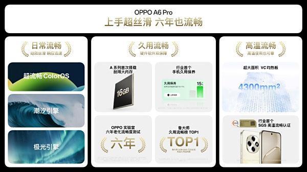 OPPO A6 Pro 16GB大内存+700mAh电池,软硬双保六年流畅运行,大众机型首选之选