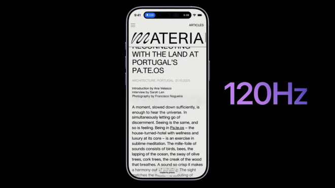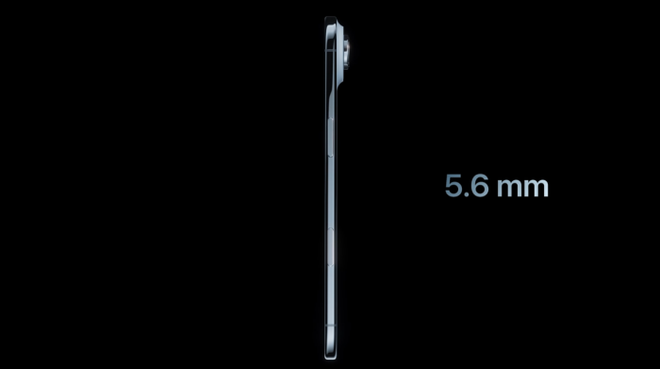 接着是iPhone Air,其最大的特点当属超薄的机身,厚度仅为5.6mm,成为“迄今最薄的iPhone”,重量也只有165g,放在当下手机市场确实够轻薄的。其屏幕为6.5英寸,同样支持ProMotion自适应刷新率技术。