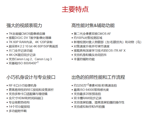 它支持最高7K/60P机内RAW记录,通过超采样实现的4K视频记录也相当出色。