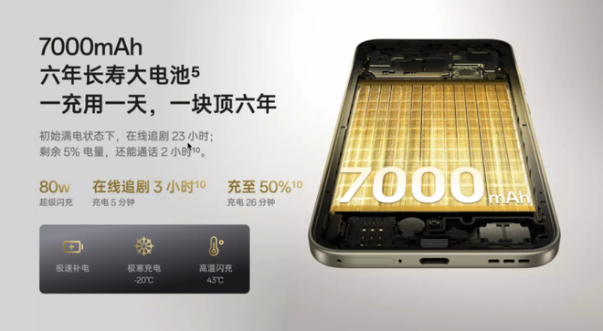 续航方面同样亮眼。新机内置 7000mAh 大电池,支持 80W 有线闪充,不仅能提供全天候续航,还具备 六年长寿电池技术,真正解决用户的“电池焦虑”。而在信号体验上,A6 Pro 引入 旗舰级山海通信方案,结合行业领先射频硬件、弱网加速引擎及德国莱茵 T Ü V 高性能信号认证,即便在地库、电梯或山区等弱网环境中,也能保证稳定通信。