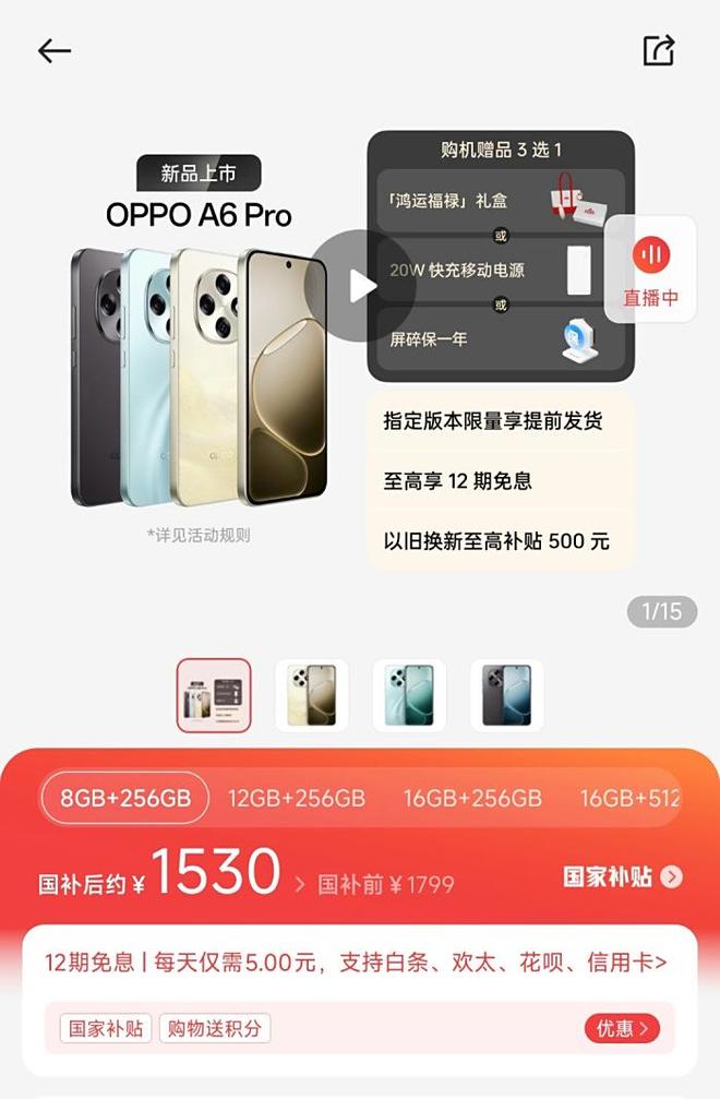 这款手机现已开售,同时这款手机还支持国补,国补后售价仅1530起,一共包含四个内存版本、分别是8GB+256GB、12GB+256GB,16GB+256GB以及最高包含16+512GB内存版本,相对而言,更推荐大家购入12GB+256GB的内存版本,相对性价比会更高一些。