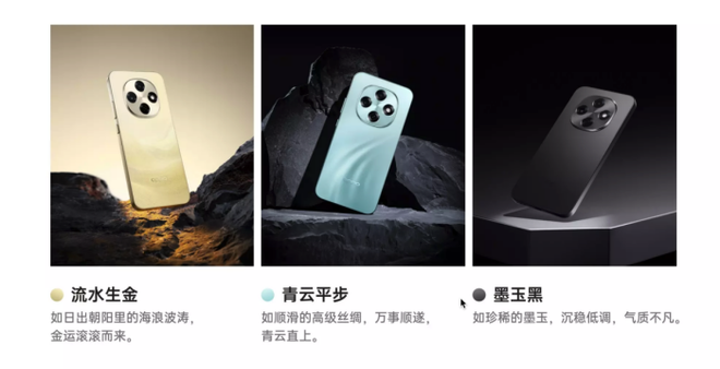 在配色方面,这款手机一共有三种配色,分别是流水生金、青云平步、墨玉黑三款配色,其中流水生金的金色纹理,搭配闪光砂工艺,在光线照射下金光闪闪,兼具质感与防指纹特性;机身厚度控制在8.11mm,重量约191g,单手握持无压力,兼顾轻薄与耐用。