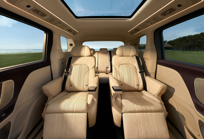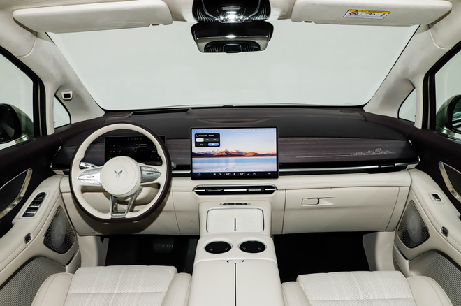 内饰方面,乾崑系列车型大体沿用了现款车型的设计,采用三辐式方向盘,配备10.25英寸全液晶仪表和15.6英寸中控屏,不过车机系统升级成了鸿蒙座舱5。内饰配色新增紫米和玄青两种颜色,中控台配备斑马木纹饰板,车内采用了大面积软包材质,提升了车内的视觉效果和豪华感。第二排座椅依旧是两个支持零重力模式的独立座椅,顶配车型第三排座椅升级了座椅加热、通风功能,后排乘客的乘坐舒适度有所改进。17.3英寸3K后排吸顶屏、13升冷暖冰箱这两项关键配置自然是有的,长途出行的话能排上大用场。