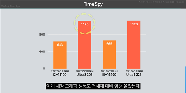 酷睿Ultra 3 205的核显Time Spy图形分1125,同比i3-14100暴增75%,运行《DOTA2》《Valorant》非高负载游戏可保持1080p 60 fps,核心频率稳定在1.8 GHz,CPU占用仅40-60%。