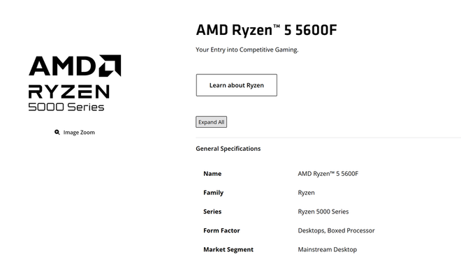 与此同时,AMD也为AM4平台带来了新品锐龙5 5600F。该处理器采用6核心12线程设计,基于Vermeer芯片(而非APU常用的Cezanne芯片),这意味着它不仅CPU性能有所保障,还支持完整的PCIe功能。其基础频率为3.0GHz,加速频率为4.0GHz,相比锐龙5 5600分别降低了100MHz和400MHz,但仍是一款极具竞争力的入门级选择。