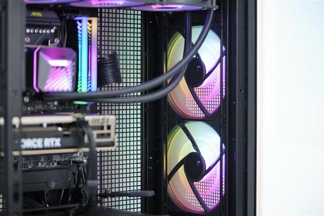 顶部支持3x120mm/2x140mm风扇或对应的水冷排,尾部预装一把120mm 双螺旋旋涡风扇,也可自行更换为120mm水冷散热器。