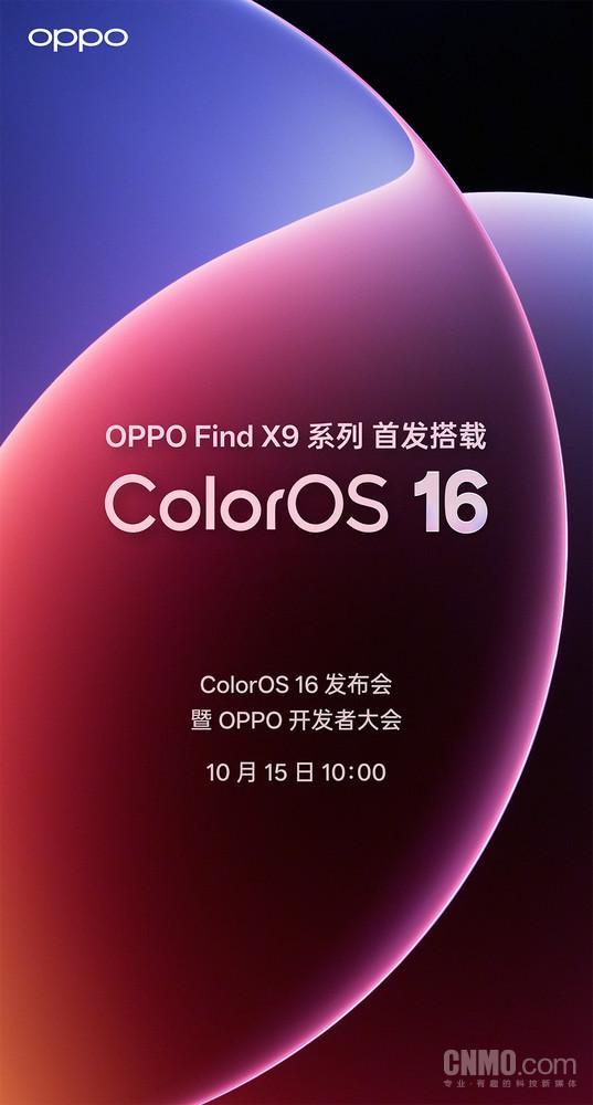 9月22日,OPPO官方宣布OPPO Find X9系列将首发全新ColorOS 16系统,能为用户带来更流畅的系统和更佳的AI体验。值得一提的是,ColorOS 16发布会暨OPPO开发者大会将于10月15日10:00举行。