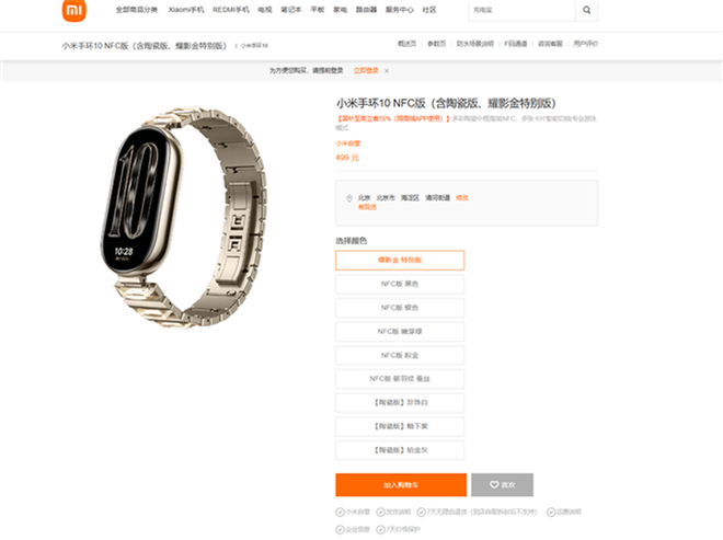 小米手环10耀影金特别版发布,499元,镶嵌6颗工艺水晶的时尚新品