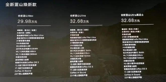 当然了,目前在售的全新蓝山焕新版,其实在今年的5月份才正式上市,新车共有3款配置车型,而售价区间则为29.98-32.68万元。