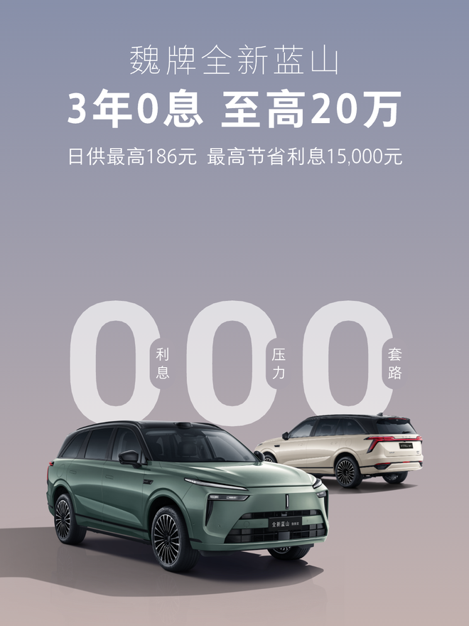 就在刚刚,魏牌全新蓝山又推出新的7月限时购车优惠政策了。至于具体的政策内容吧,其实非常的乏善可陈,就是给全新蓝山推出了一个3年0息,至高20万元的金融购车优惠政策。