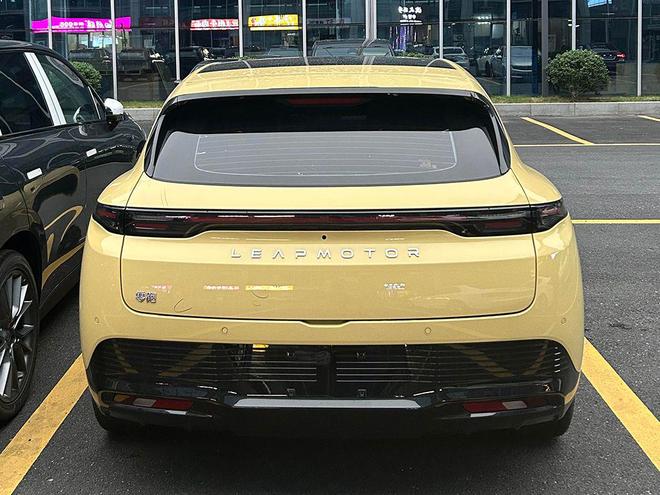 车尾属于是宽厚、饱满的视觉效果,家族化的“飞翼星芒”贯穿式尾灯和“LEAPMOTOR”字母标识都有保留,往下则是大面积的熏黑后包围和夸张扩散器,再配合环形扰流板,也是妥妥的小钢炮既视感。