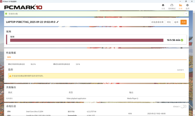 而在PCMark 10视频播放续航测试当中,ThinkBook 14+ 2025酷睿版在续航测试中表现同样出色,实测续航达到了16小时56分钟,反复观看素材或是成片也能保证出色的续航体验。