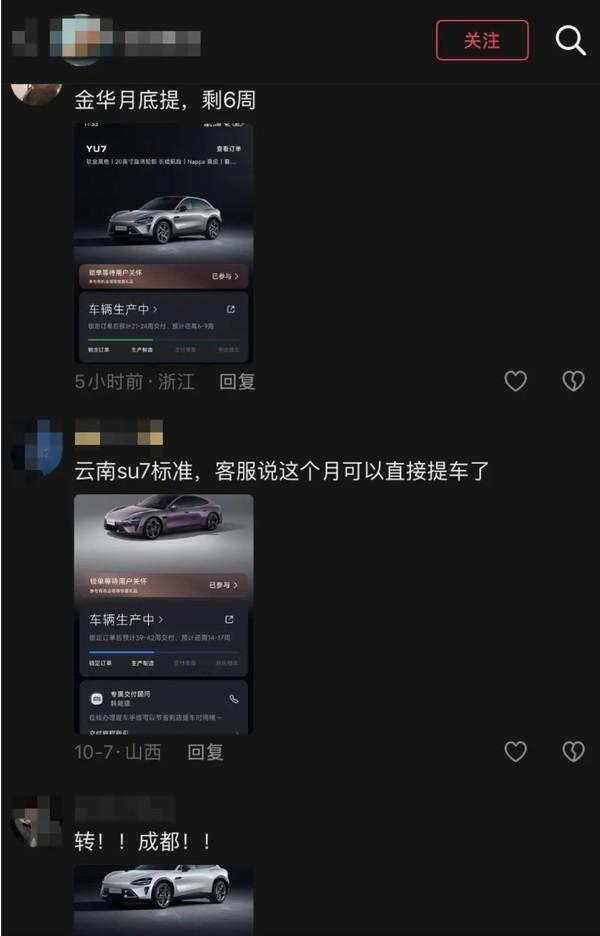 据CNMO了解,小米汽车转单市场之所以在前期如此火爆,提车周期过长是主要原因。以YU7为例,当前预定标准版YU7车型,消费者最晚需要等待48周才能交付,换算下来接近1年时间。对于那些急于用车的消费者来说,通过转单市场获得一个排序靠前的订单,无疑成为了缩短等待时间、尽早提车的捷径。这也使得转单市场在一段时间内异常活跃。