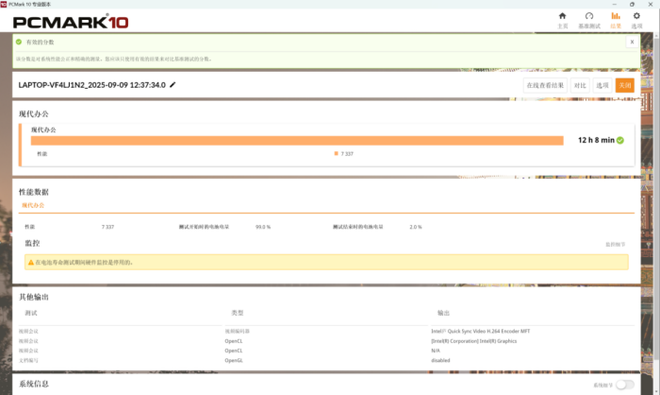 另外,作为“六边形战士”,AI高静游戏本还打破了一项游戏本的刻板印象——续航。以往游戏本的续航往往在5小时以内,如今凭借酷睿Ultra 7 255HX出色的高能效表现,在PCMark 10现代办公测试中,(屏幕亮度30%、链接Wi-Fi、集显模式)天选6 Pro的续航时长超过了12小时,上课、开会可以甩开适配器了,而且告别电量焦虑,进一步丰富了使用场景。