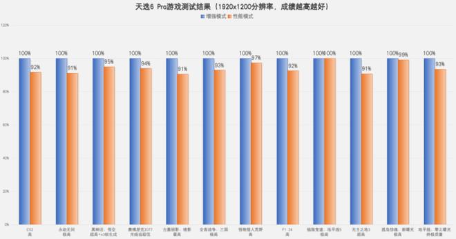 在1920x1200分辨率下,对比天选6 Pro在增强模式以及性能模式下游戏帧数表现,结果如下。