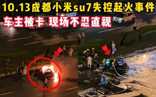 2025年10月13日,成都一辆小米SU7发生严重碰撞后起火,现场多名路人参与救援,却无法从外部打开车门。