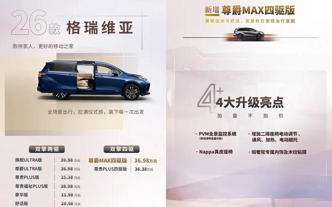 最后,你们觉得2026款的一汽丰田格瑞维亚在后期也会卖和2026款赛那一样的26.98万吗?对于这两台车,你们更喜欢谁?又有何意见和看法,评论区里留言说说看。(文/优视汽车 大卓 )