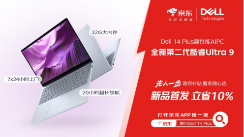 京东独家首发戴尔新款高性能AIPC产品,即戴尔14 Plus 32G,该产品配备强大性能,同时享受国家补贴,立省20%,这款电脑旨在为用户提供卓越的计算体验,无论是办公还是娱乐,都能轻松应对。