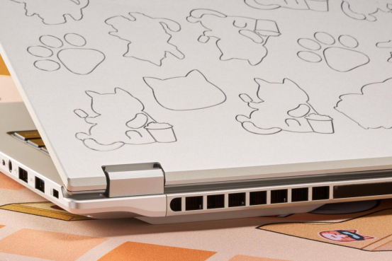 COLORFIRE MEOW系列始终致力于将科技产品与用户情感深度链接。喵Book14 Pro采用全金属一体化机身,轻至1.49kg,薄至17.95mm,带来极致便携体验。其独特的“喵星银”配色与A面经由CNC高光雕刻工艺打造的萌物拼接设计,将潮流萌宠元素与精密科技完美融合,使笔记本电脑不再是单纯的工具,更是彰显用户个性与品味的时尚配饰。