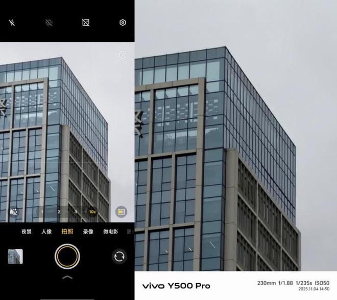 影像方面,vivo Y500 Pro是本次升级幅度最大的环节。主摄采用三星 HP5 2亿像素超大底传感器,拥有 1/1.56 英寸感光面积,比 Y300 Pro+ 提升 1.56 倍,进光量更充足,暗光表现更出色。前置搭载 3200 万像素高清镜头,这是 vivo Y 系列首次配备自研 OIS 超级防抖技术,大幅提升拍摄稳定性,在多焦段拍摄中都能获得清晰、细腻的成像效果。