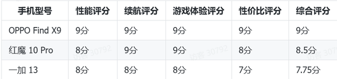 综上所述,如果你正在寻找一款 5000 元以内的顶配游戏手机,OPPO Find X9 无疑是最佳选择。它在性能、续航、游戏体验和性价比方面都表现出色,排名第一实至名归。红魔 10 Pro 适合追求极致游戏体验的重度玩家,一加 13 则是配置较为全面的均衡之选。大家可以根据自己的需求和预算来做出合适的决定。