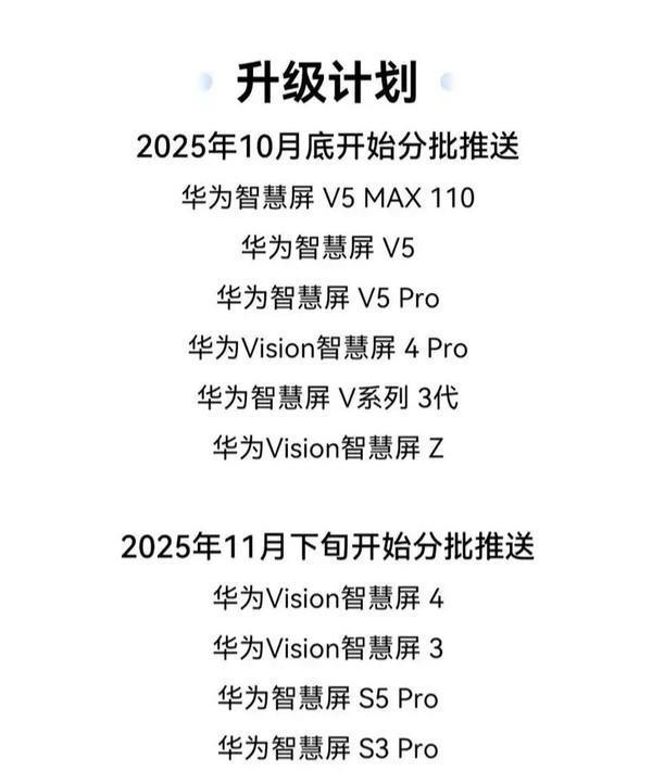 值得一提的是,华为智慧屏Mate TV系列将在11-12月开启鸿蒙HarmonyOS 6版本升级。