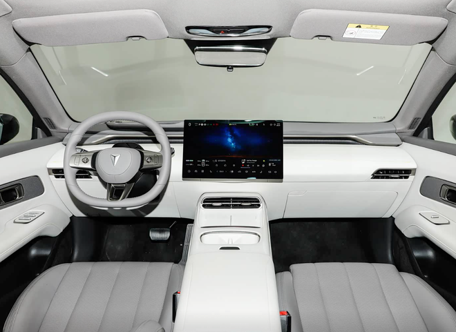 内饰方面,深蓝L06大致沿用了深蓝L07的内饰布局,不过方向盘造型等细节方面有所调整。依旧采用无仪表盘设计,取而代之的是AR-HUD抬头显示系统。新车搭载15.6英寸的向日葵屏,并首搭3纳米车规级座舱芯片,车机系统流畅度或有进一步提升。