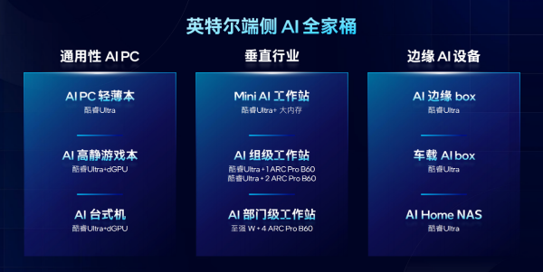 “路更平”——包括酷睿Ultra 200H系列,以及锐炫Pro B60、AI Box等平台在硬件层面打造了可靠的算力基础,能够实现从轻薄本、高性能笔记本、迷你PC、台式机、小型工作站、多卡工作站的多产品形态和品类覆盖,满足端侧AI差异化的场景和复杂需求。而且,英特尔基于软硬件创新还可以进一步优化端侧AI体验,释放更极致的算力。