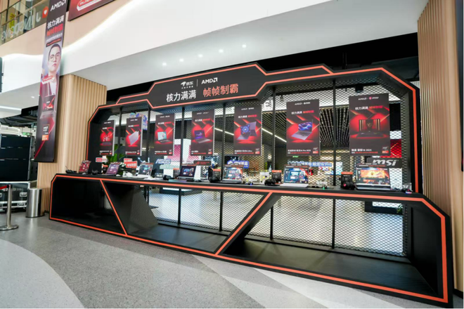 此外,京东还巧妙融合了美食、潮礼与互动游戏,打造了全方位的嘉年华体验。京东MALL内多个笔记本门店中特别设置了锐龙9000HX专属体验空间,玩家可亲自体验硬件性能跑分、试玩热门游戏,完成互动任务后还可获得AMD限量周边。京东和AMD也携手百年品牌“美珍香”与国民饮料“珍珍”,为玩家提供轻食饮品补给,营造“边玩边享”的轻松社交氛围。同时,现场设置的集章打卡、幸运抽奖等互动环节,也为玩家准备了包括AMD定制鼠标垫、帧香限定徽章在内的多款潮酷周边,更有搭载锐龙9000HX系列处理器的笔记本电脑作为终极大奖,让幸运玩家将“梦中情机”带回家。