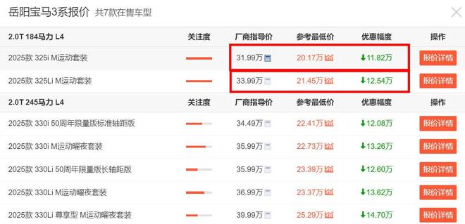 可直到我去汽车报价网站上看完,再去线下的宝马经销商处一打听,好家伙,原来宝马3系 325i车型真的已经干到裸车20万出头的价格了。