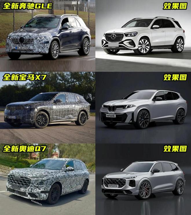 2026年想买德系BBA品牌旗舰级SUV的消费者有福了,因为全新一代奔驰GLE(参数丨图片)、宝马X5、奥迪Q7的谍照和渲染图均已经被曝光了,下面我们就基于它们的外观来看看,这3款德系豪华中大型SUV未来谁能大卖。