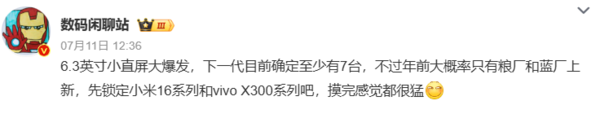 7月14日,有博主在社交平台上曝光了疑似vivo X300系列的影像参数信息。他提到,vivo X300系列将搭载2亿像素主摄+双5000万像素镜头。
