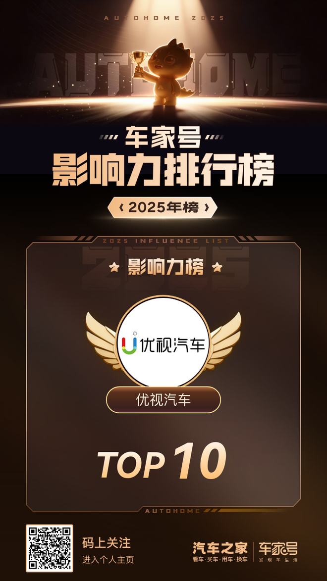 实力见证!在刚刚发布的「车家号2025年度影响力排行榜」中,优视汽车凭借出色的内容质量、广泛的用户影响力与深厚的行业洞察力,强势入选2025年度车家号影响力榜前十强!