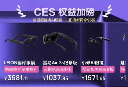 想要沉浸式体验CES盛况并抢占科技先机,只需在CES期间打开京东APP搜索“2026CES”,即可一键进入专属会场,预约3天超长探展直播。更重要的是,通过京东购买CES同款新品,用户还可享受“国家补贴”至高立省15%优惠,电脑类产品单件至高补贴1500元,手机、平板、智能穿戴等产品单件至高补贴500元。针对AI眼镜品类,京东还重磅上线了普通眼镜换AI眼镜的“以旧换新”服务,部分AI眼镜可享,还可叠加以旧换新95折优惠。未来科技,触手可及,即刻与京东一起开启你的探索之旅吧。