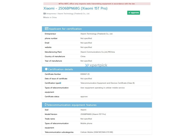 近日一款型号为2506BPN68G的手机获得泰国NBTC认证,而这就是即将发布的小米15T Pro。这款手机搭载了联发科天玑9400+旗舰平台,是小米15系列中唯一搭载天玑芯片的机型。天玑9400+采用了第二代全大核架构,8核CPU包括1个主频高达3.73GHz的Arm Cortex-X925超大核,3个Cortex-X4超大核以及4个Cortex-A720大核。