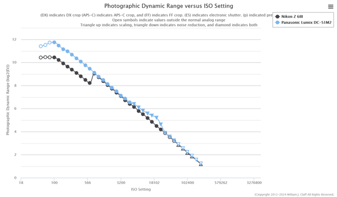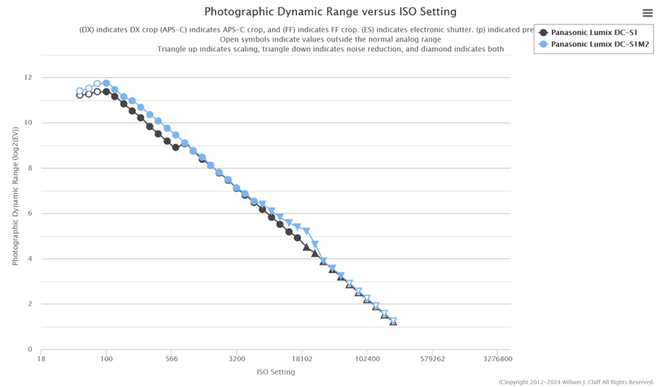 近日,知名摄影技术评测网站Photons to Photos公布了松下LUMIX S1M2 相机的动态范围测试结果。这款相机凭借其搭载的堆栈式 CMOS 传感器,在低感光度区域的表现相较于同样使用该传感器的尼康 Z6III更加突出。尽管测试中未明确提及,业内普遍认为,S1M2的动态范围增强功能可能为其出色的低光表现提供了额外的支持。
