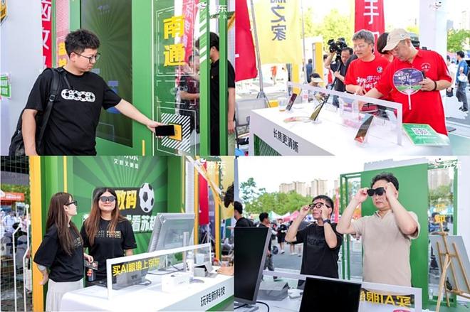 赛场外,京东展台热闹非凡、人头攒动。铁杆球迷们纷纷涌向NFC扫码加油区,为自己支持的球队加油点赞,参与互动还能获得京东3C数码提供的解暑好礼;电脑数码区吸引着众多数码控流连忘返,用户纷纷体验新潮AI眼镜,沉浸式感受趋势数码产品带来的科技感。