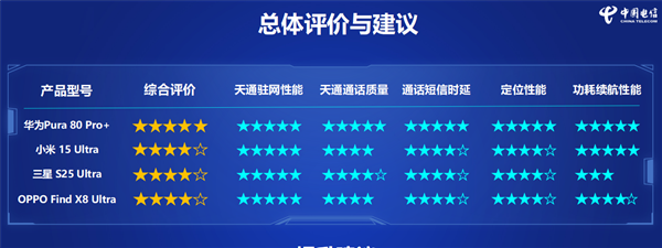 而在终端洞察报告-大众智能直连卫星手机评测中,华为 Pura 80 Pro +脱颖而出,成为唯一获得综合评价五星的机型,其驻网性能、通话质量、通话短信时延、定位性能、功耗续航性能五项关键指标全部拿下五星,全方位展现了华为在终端技术领域的顶尖实力。