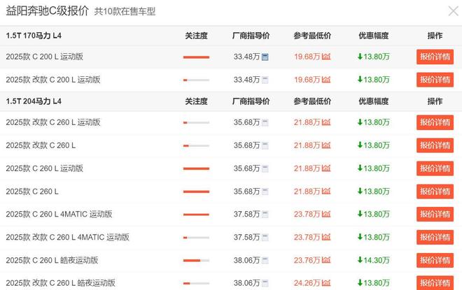 不过,长期来看,奔驰C级乃至整个传统豪华B级车市场,都需要直面来自中国新能源品牌的巨大挑战,以往靠品牌光环就能轻松取胜的时代已经一去不复返了。也正是因此,我们才能看到传统BBA品牌旗下的“34C”车型都能拥有大幅的终端优惠。最后我想问大家,如果新款C级还卖30万起步,你觉得它会热销吗?评论区里留言说说看。(文/优视汽车 大卓 )