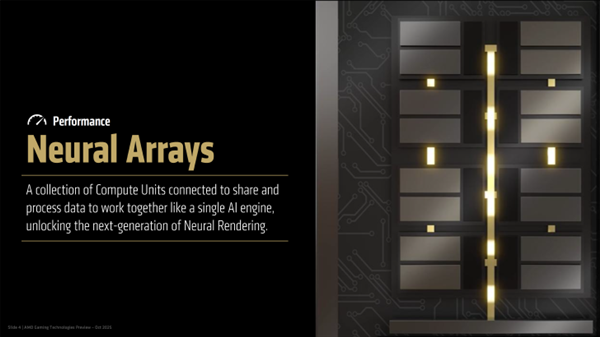 而Neural Arrays是一种集合了多个计算单元的架构,这种设计将大幅提升神经渲染的性能,为未来的FSR和PSR超分技术提供支持。AMD和索尼预计,Neural Arrays将明显提升超分辨率图像质量和场景渲染效果。