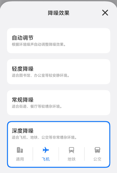 耳机支持自适应降噪模式,能实时检测耳道与环境噪音,智能调整降噪深度。同时提供飞机、地铁、公交三种定制通勤降噪模式,用户可根据场景自由切换。