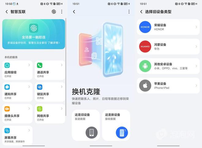 在互联方面,MagicOS 10不仅延续了信任环技术在多设备协同上的无缝体验,更将其开放性与便捷性推向新高度,实现了与苹果、安卓、鸿蒙、Windows等全平台设备的便捷互联,真正做到了“谁都能连,传啥都快”。其中最具代表性的就是荣耀目前已经支持全品牌无忧换机,针对苹果用户,支持USB有线克隆与iCloud云侧数据同步,数据覆盖种类都位居首位;面对全新的鸿蒙NEXT用户,荣耀更是行业首发换机克隆支持,可实现图片(含动态照片)、视频、联系人等数据的高速迁移;而对于安卓用户,借助换机联盟生态,更能无缝迁移微信/QQ聊天记录、小说进度等第三方应用数据,让换机过程再无后顾之忧。