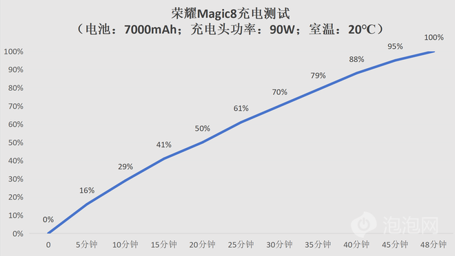 在充电方面,荣耀Magic8标准版支持90W有线快充和80W无线快充,实测中,20分钟就能将手机充至50%左右的电量,仅需48分钟左右就能将这块7000mAh大电池充至满电。还有功率接近有线快充的无线快充加持,让你在使用当中不但续航持久,也能够做到快速回血,消灭续航焦虑。