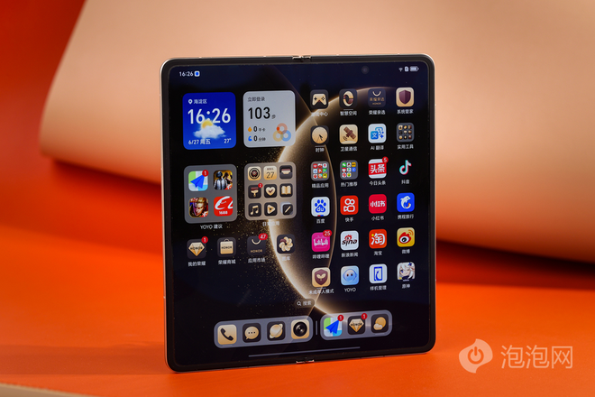 同时,荣耀Magic V5采用了宇航服牵引绳同款特种纤维制作后盖,使手机不仅比纸更轻而且比钢更强,抗冲击性提升了40倍。这种材料的应用不仅展示了荣耀对于创新材料的研发能力,也体现了品牌在细节上的精益求精。